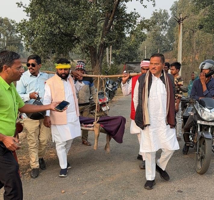 मध्य प्रदेश के सिंगरौली जिले की ग्राम पंचायत गोभा में बैगा आदिवासी समुदाय के एक व्यक्ति के...