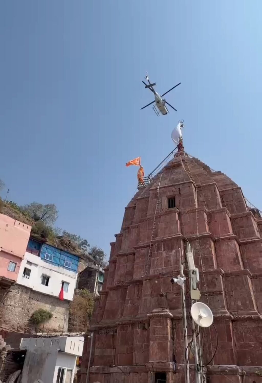विशेष प्रयासों से पहली बार मंदिर शिखर पर हेलीकॉप्टर द्वारा पुष्पवर्षा की गई। ट्रांस भारत एविएशन के हेलीकॉप्टर से दोपहर में मंदिर के शिखर पर पुष्प वर्षा कर भगवान भोलेनाथ का भव्य स्वागत एवं अभिनंदन किया गया।