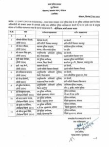 गृह विभाग के अपर सचिव आशीष भार्गव द्वारा जारी इस सूची के प्रमुख नाम और उनकी नई पदस्थापना इस प्रकार हैं: