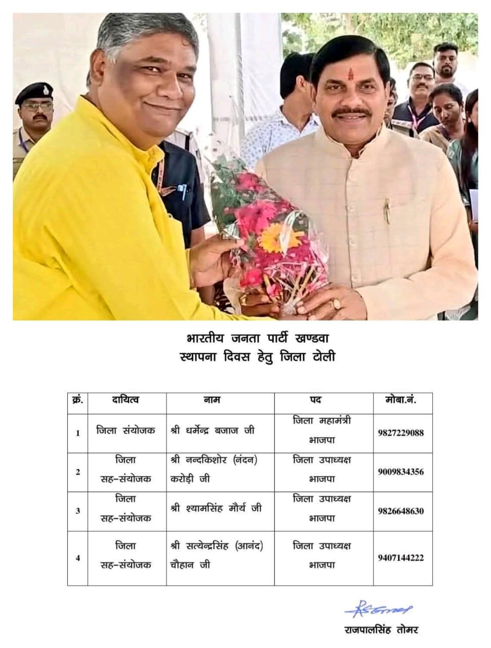 भाजपा खंडवा में नई टीम का गठन: स्थापना दिवस पर जिला टेली समिति घोषित, धर्मेंद्र बजाज बने...